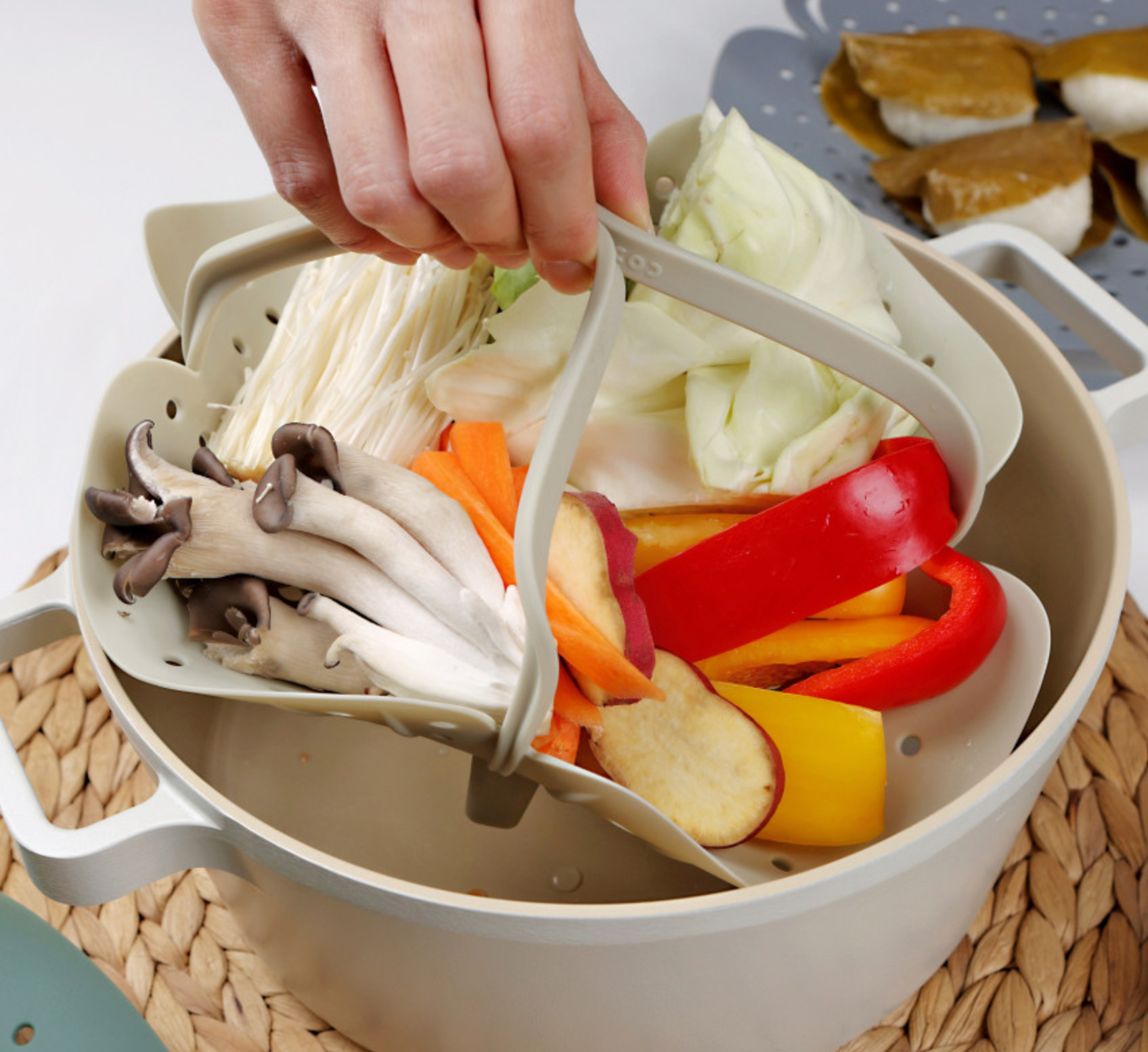 Made from carefully selected Korean-made silicone, it offers excellent heat resistance and safety for everyday cooking. The evenly spaced steam holes allow steam to circulate consistently, making it ideal for steaming sweet potatoes, vegetables, dumplings, and more.